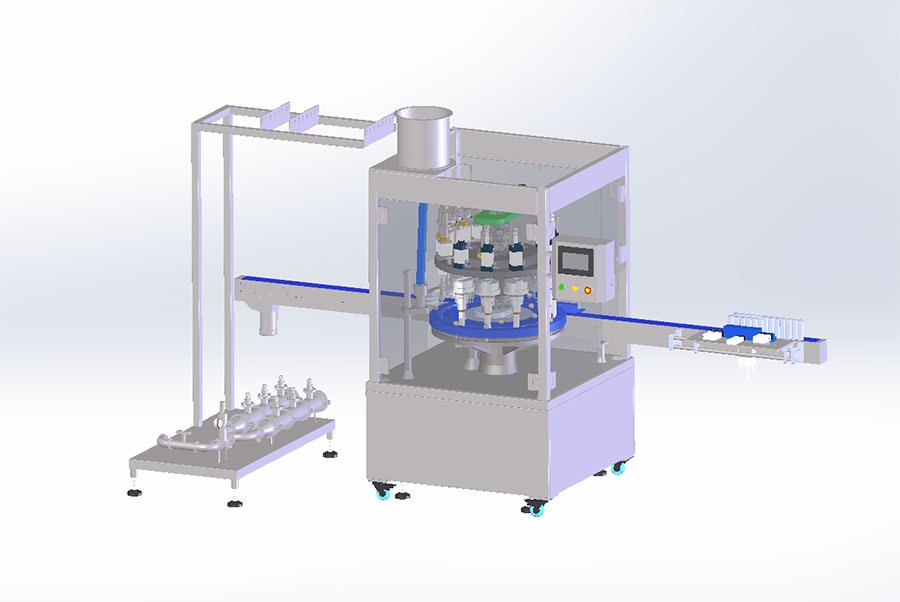 產(chǎn)品描述設(shè)備如下圖1: 此產(chǎn)線配置產(chǎn)品有(從前端到后端):回轉(zhuǎn)式高速上閥機(jī)組、離心式高速理閥機(jī)、供閥提升機(jī)、6工位高精度計量缸&單組增壓泵、6頭封口&6頭充氣一體機(jī)(正壓防爆電箱和防爆人機(jī)界面)。具有操作簡單,人機(jī)交互友好,故障指示等優(yōu)點(diǎn)。便于排查和排除故障。2.各機(jī)組完成的生產(chǎn)工藝和性能參數(shù):A.回轉(zhuǎn)式高速上閥機(jī)組如圖2所示 圖2 型號:SG-QGQW25-150HSF回轉(zhuǎn)式高速上閥機(jī),16工位回轉(zhuǎn)式高速上閥機(jī)汲取國外先進(jìn)設(shè)備技術(shù)研發(fā)而成,機(jī)組由閥門提升機(jī),轉(zhuǎn)盤式離心理閥機(jī)(此設(shè)備根據(jù)閥門形式非標(biāo)定制)和高速回轉(zhuǎn)上閥機(jī)構(gòu)成。工作原理為一個送閥軌道...